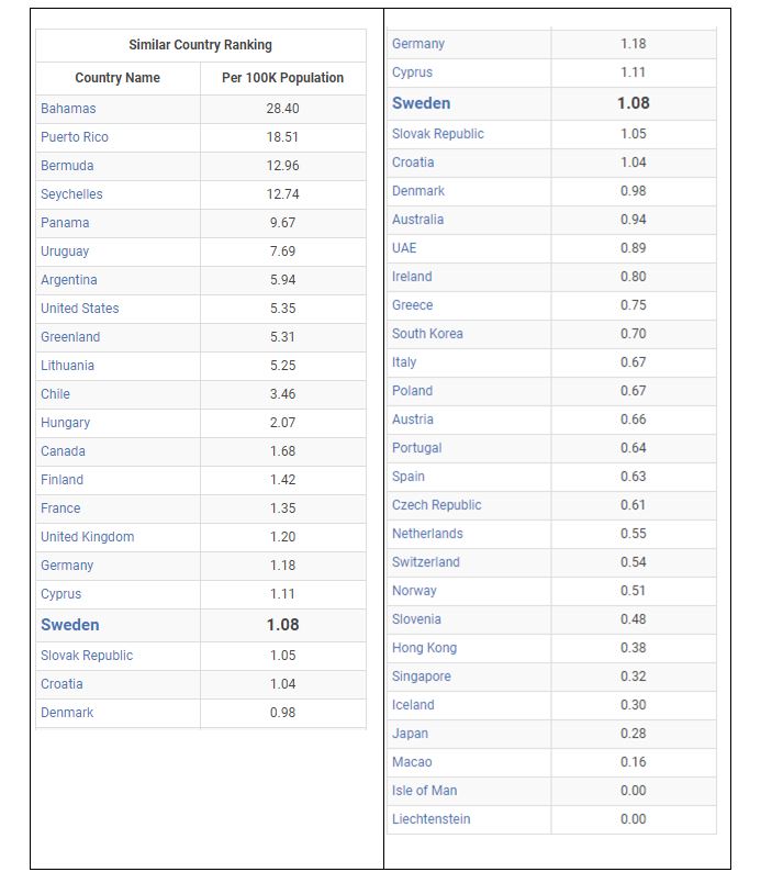 مقایسه آمار جرایم مرگبار سوئد با دیگر کشورها