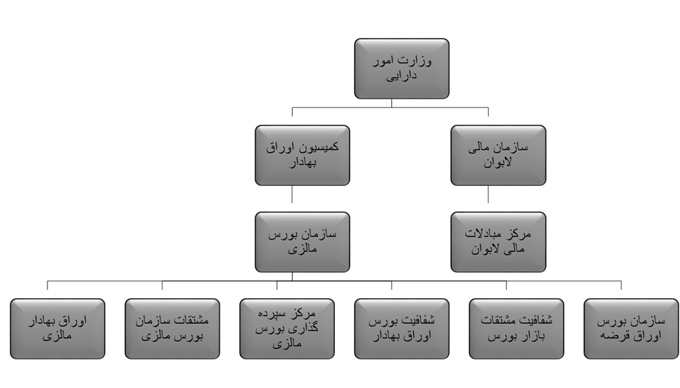 در چارت زیر همچنین ساختار نظارتی بر بازار بورس آمده است.