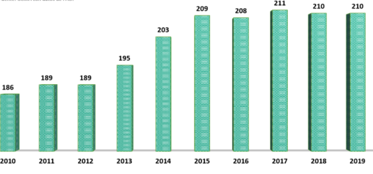 بر اساس دادههای سازمان خواربار وکشاورزی ملل متحد (فائو) تولید این نهاده کشاوری در دوره 2010 لغایت 2019 با نرخ رشد متوسط سالانه 1.3 درصد رشد داشته است. اما در سال 2018 و 2019 حجم تولیدی به میزان 210 میلون تن ثابت بوده است.