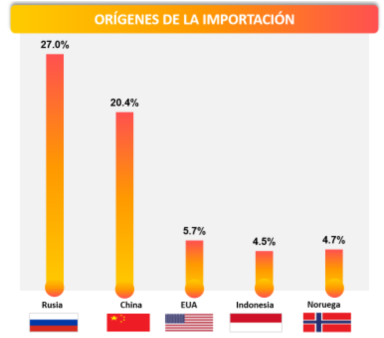 روسیه با تامین 912 هزار تن از 3.4 میلیون تن واردات مکزیک سهم 27 درصدی از تامین کود شیمیایی در مکزیک را برعهده داشته است. بعد از این کشور چین با 20.4 درصد از حجم واردات مکزیک در خصوص کود را به خود اختصاص داده است که عمدتا اوره بوده است.