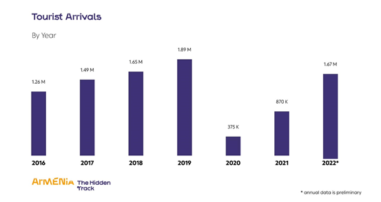 . بر اساس دادههای اولیه، 1.67 میلیون گردشگر در سال 2022 از ارمنستان بازدید کردهاند.