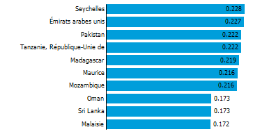 شاخص ارتباط حمل و نقل دریایی دوجانبه - 10 شریک برتر در سه ماهه اول 2021