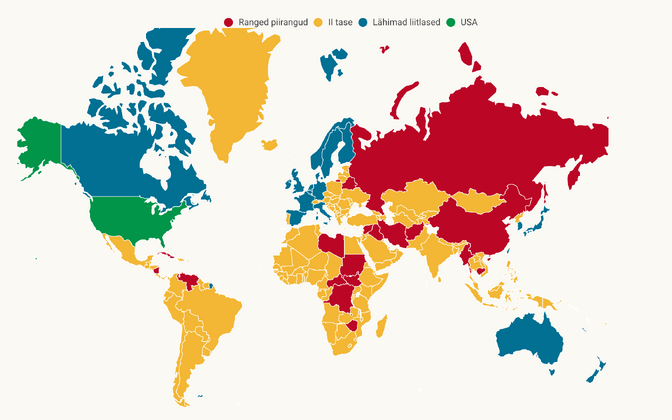 نقشهای از طبقات محدودیت ایالات متحده که استونی در رده 2 (زرد) قرار دارد. منبع : ERR