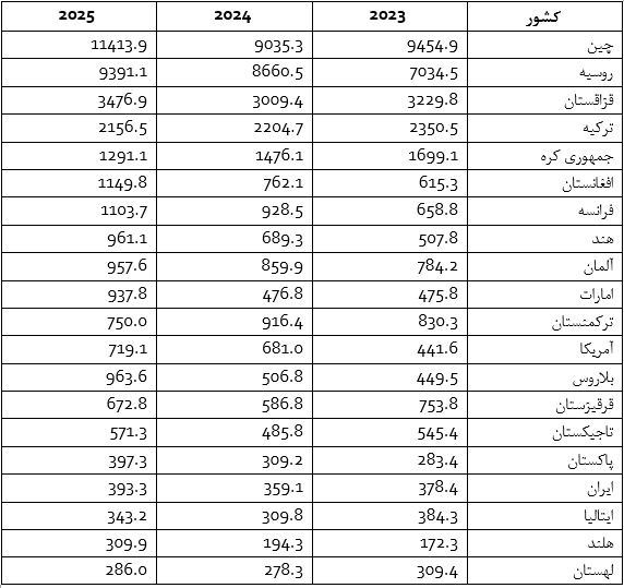 سایر کشورها –5 میلیون دلار.