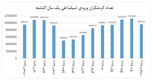 تعداد گردشگران ورودی اسپانیا به تفکیک کشور های مبداء