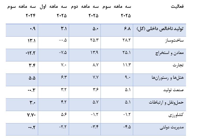 رشد تولید در سه ماه سوم سال 2025 با تمرکز بر بخشهای کلیدی زیرساخت و خدمات حاصل شد.
