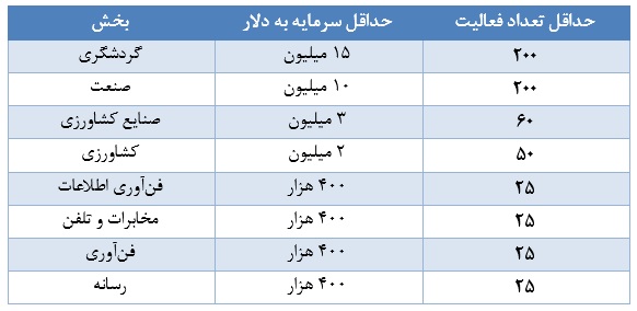 معیار واجد الشرایط بودن: حداقل مبلغ لازم برای سرمایه‌گذاری 10 میلیون  دلار