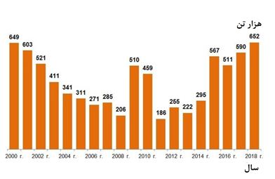 - صادرات آهن اسفنجی در سال 2018 به میزان %27 افزایش داشته و به 3.64 میلیون تن رسیده است.