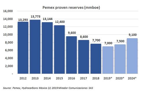 رومرو مدیرعامل پمکس همچنین از برنامهریزی این شرکت برای افزایش ذخایر اثباتشده نفت (ذخایر p1) از 7 میلیارد بشکه نفت در سال جاری به 7.5 میلیارد بشکه در سال 2020 خبر داد و عنوان داشته است بر اساس برنامه این شرکت در جهت بهبود جایگاه مکزیک در رتبهبندیهای جهانی حجم ذخایر نفت اثبات شده این کشور در پایان دولت آندرس مانوئل لوپز اوبرادور به حجم 9.1 میلیارد بشکه در روز برسد. شایانذکر است حجم ذخایر اثباتشده مکزیک از سال 2013 با کاهش روبرو گردیده و در سال جاری به 7 میلیارد بشکه در روز رسیده است.