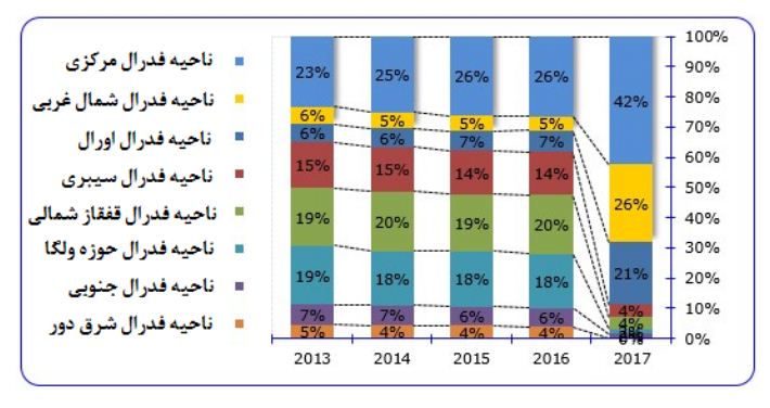 ساختار مصرف سنگ طبیعی بر اساس مناطق فدرال روسیه (درصد)