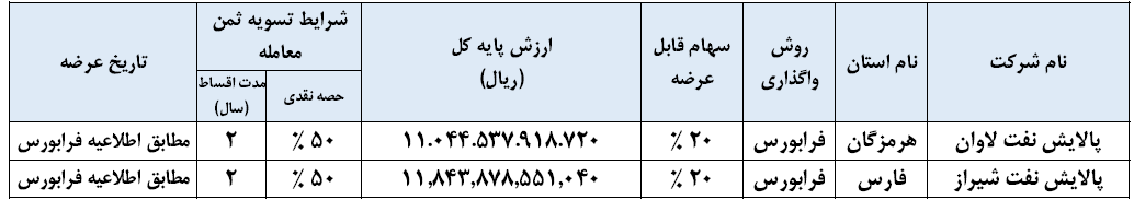 اطلاع رسانی عرضه بنگاه های قابل واگذاری