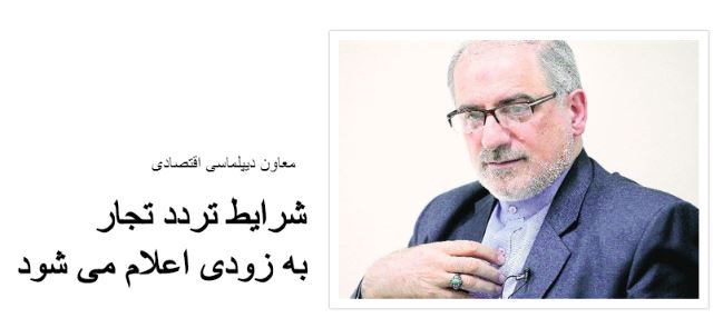 جناب آقای غلامرضا انصاری معاون دیپلماسی اقتصادی وزیر امور خارجه با اشاره به اینکه نمایندگیهای ایران در خارج از کشور در حال مذاکره با مقامات خارجی برای تردد تجار و بازرگانان هستند، گفت: شرایط تردد تجار و صادرکنندگان با رعایت پروتکل های بهداشتی به زودی اعلام میشود.