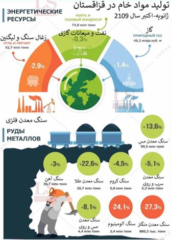 در نگاه کلی، میزان استخراج مواد خام در قزاقستان از ژانویه تا اکتبر 2019 بدین شکل بوده است: