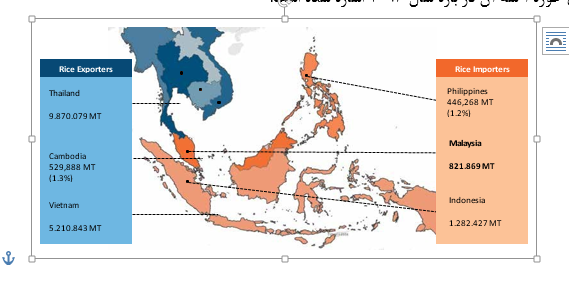 واردات برنج به مالزی در سال 2018 به 740 هزار تن و یا به عبارتی حدود 30 درصد نیاز داخلی رسید. در تصویر زیر آمار مربوط به واردات و صادرات برنج در بین کشورهای حوزه آ سه آن در بازه سال 2016 اشاره شده است.