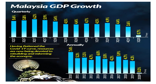 براساس گزارش های رسمی تقاضا برای دریافت وام های مصرفی درسال 2020 به میزان 58.5٪ کاهش یافته زیرا مصرف کنندگان در هزینه کردن برای اموری مانند خرید خانه و وسایل نقلیه احتیاط میکنند. در همین حال درخواست ها برای وام های تجاری نیز به میزان 13.9٪ کاهش داشته است. نرخ بیکاری مالزی در ماه آوریل2020 به رقم 5 درصد رسیده و پیش بینی میشود این رقم افزایش یابد. همچنین برآورد شده که نرخ رشد تولید ناخالص داخلی در نیمه دوم 2020 بهبود یافته و (خوش بینانه) به 3.5٪ برسد و برای سال 2021 این رقم تا 7.5 درصد نیز پیش بینی شده است.