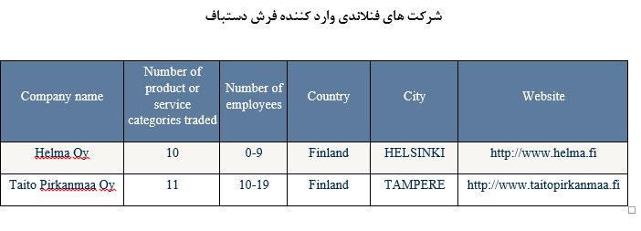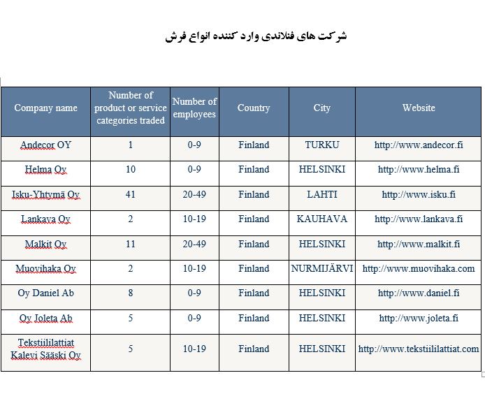 شرکت های عمده تولید کننده انواع فرش و منسوجات در فنلاند عبارتند از: