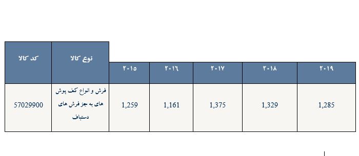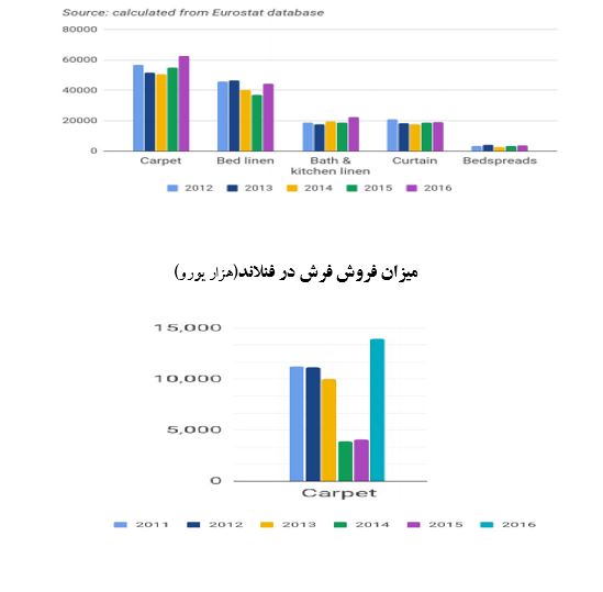 به موجب آمار یوروست، بین سالهای 2012 لغایت 2016 تقاضا برای فرش در فنلاند بیش از سایر منسوجات مورد استفاده در منزل، بوده است (شکل زیر)