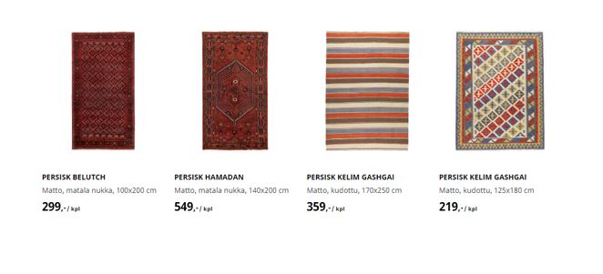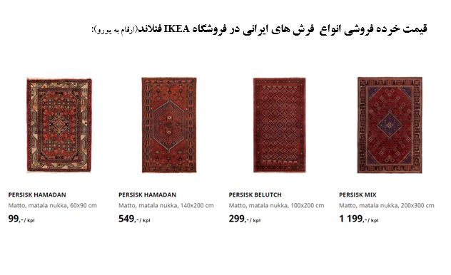 قیمت های شاخص فرش در چهار فروشگاه معتبر فنلاند