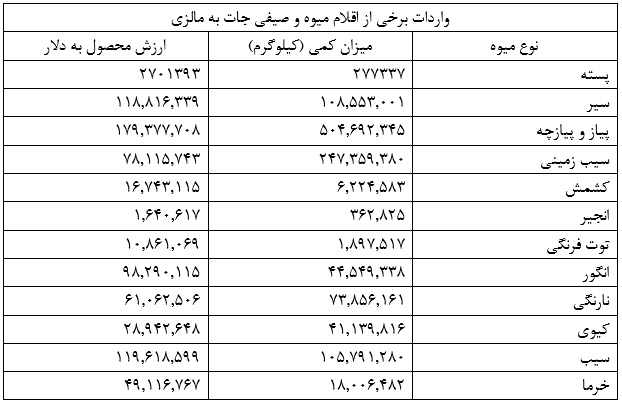 - وابستگی به واردات گوشت، سبزیجات و میوه از سایر کشورها؛
