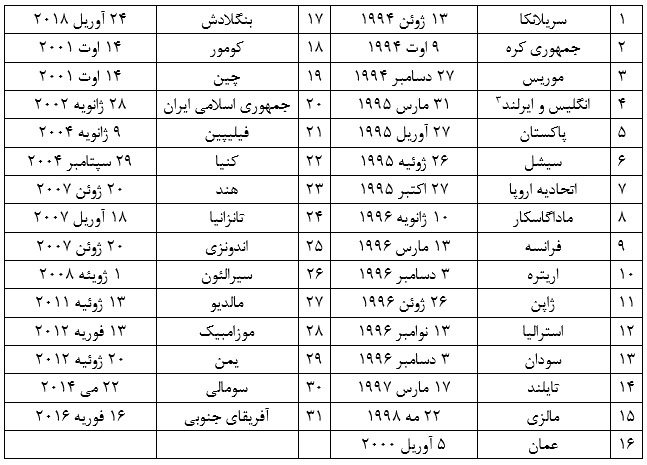 در این خصوص موارد زیر در ارتباط با کشورمان قابل توجه میباشند: