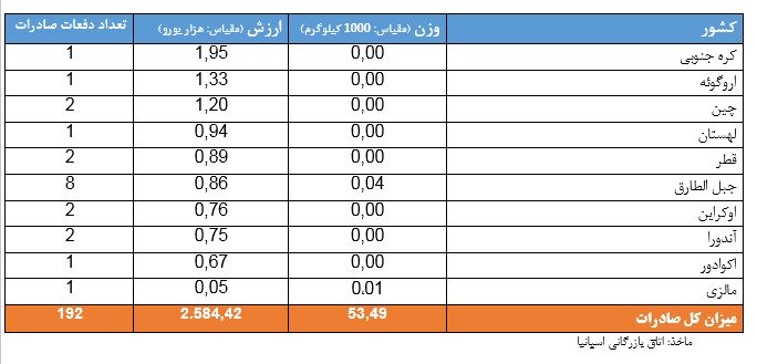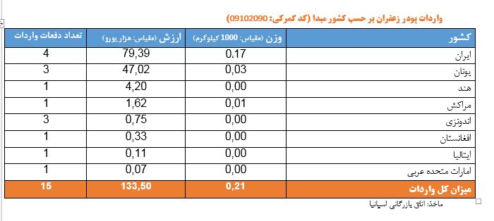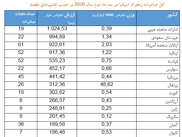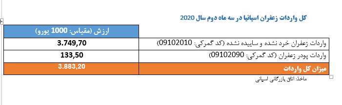 کل صادرات زعفران اسپانیا در سه ماه دوم سال 2020