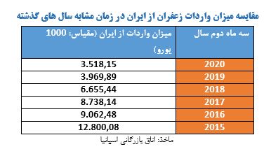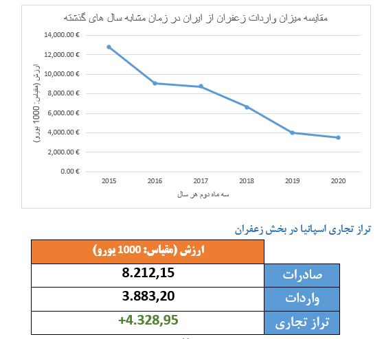 صادرات و واردات زعفران اسپانیا در سه ماهه دوم سال 2020
