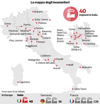 نقشه مکان نیروگاههای زباله سوزی در ایتالیا