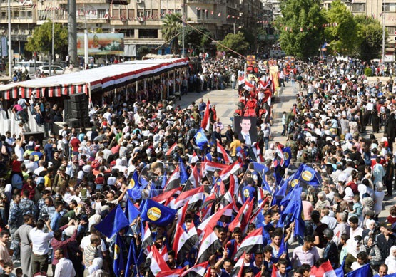 شروع تقویم رویدادهای سوریه در ماه آوریل، روز استقلال ملی است. به طور سنتی این روز با نمایش های بزرگ وحدت و غرور ملی همراه است. موکب ها در بیشتر مراکز مهم شهرها برگزار می‌شود، مردم محلی پرچم سوریه را به اهتزاز در می آورند و آهنگ های ملی از خانه‌ها و فروشگاه‌های محلی در سراسر کشور شنیده می‌شود.