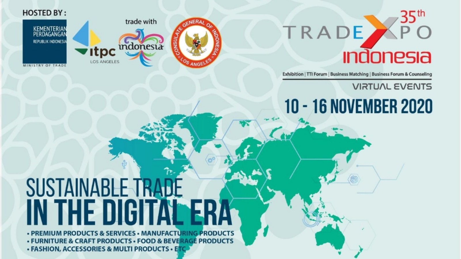 وی بیان داشت در این نمایشگاه مجازی 3800 خریدار از سراسر جهان ثبت نام کرده اند و با توجه به دستور رئیس جمهوری اندونزی برای دستیابی به بازارهای جدید، این وزارت خانه مذاکرات خوبی را با استرالیا داشته که نتیجه آن اجرایی شدن قرارداد جامع مشارکت اقتصادی دو کشور از ماه ژوئیه سال 2020 بوده است.