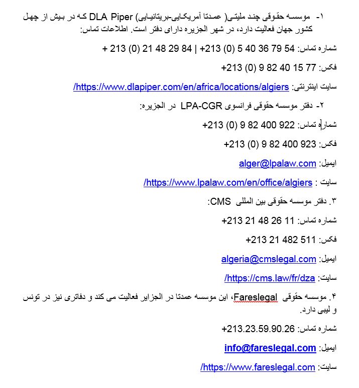 معرفی برخی موسسات مشاوره حقوقی در الجزایر