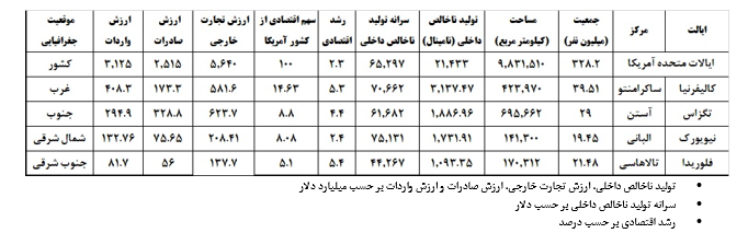 خلاصه اطلاعات اقتصادی ایالات مذکور در جدول زیر قابل مشاهده میباشد.