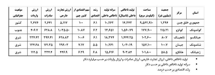 خلاصه اطلاعات اقتصادی استانهای مذکور در جدول زیر قابل مشاهده میباشد.