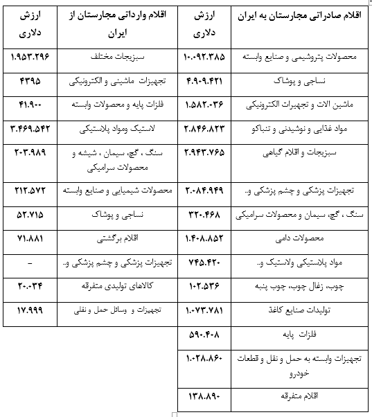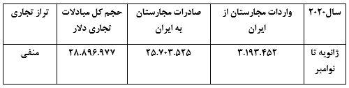 حجم مبادلات تجاری دو کشور در 11 ماه سال 2020 میلادی