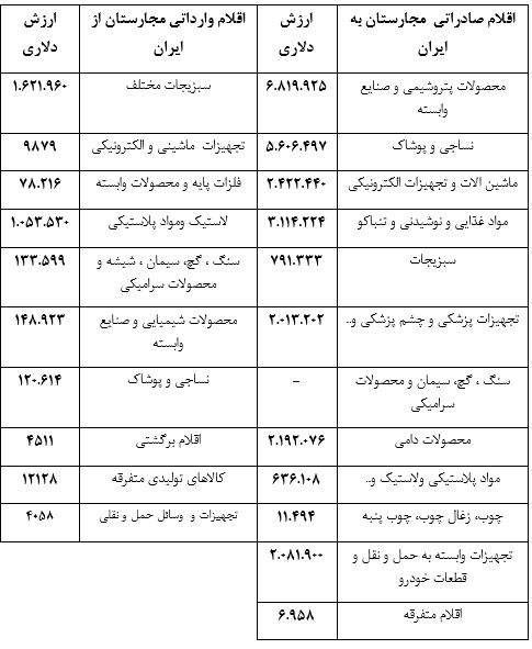 حجم مبادلات تجاری دو کشور در 11 ماه سال 2019 میلادی