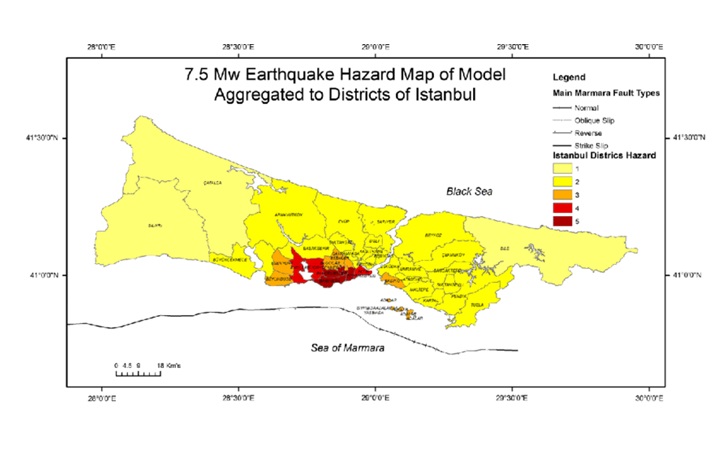 در صورت بروز زلزله استانبول که کارشناسان مربوطه شدت آن را 7.2 ریشتر پیشبینی نمودهاند تعداد 3 هزار و 496 بنا در منطقه بویوک چکمهجه، 2 هزار و 496 بنا در منطقه فاتح، 1825 بنا در منطقه باغجیلار، 1768 بنا در منطقه اسنیورت و 1707 بنا در منطقه سلیوری دچار خسارات سنگین ناشی از زلزله خواهند شد.