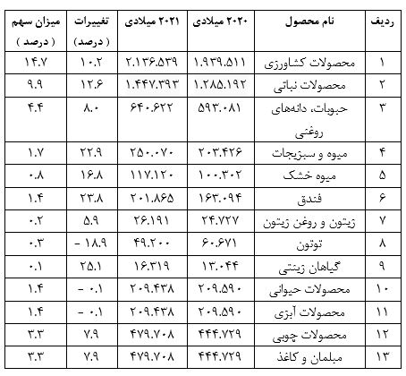 در ماه گذشته میلادی صادرات 8 زیر گروه محصولات کشاورزی از 10 گروه در این بخش افزایش یافت.