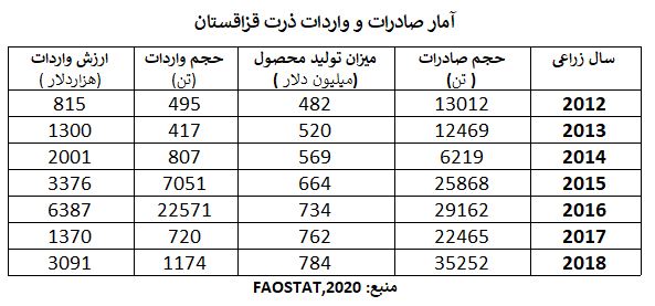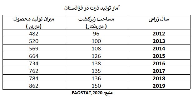 جداول زیر آمار تولید ذرت و صادرات و واردات آن در قزاقستان را نشان میدهد.