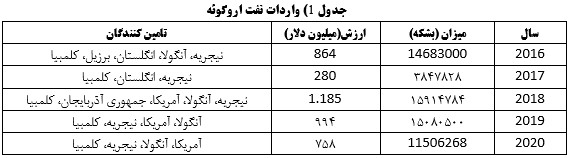 همانطور که در جدول شماره 1 مشخص است میزان واردات نفت خام توسط اروگوئه در سال 2017 به شدت کاهش یافت که این امر بدلیل انجام تعمیرات در بسیاری از واحدهای پالایشگاه لاتخا این کشور بوده است.