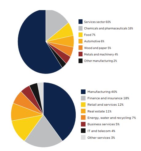 - بخش خدمات 60 درصد و صنایع تولیدی 40 درصد سرمایه گذاری مستقیم خارجی را در سال 2020 در سوئد به خود اختصاص داده است است.
