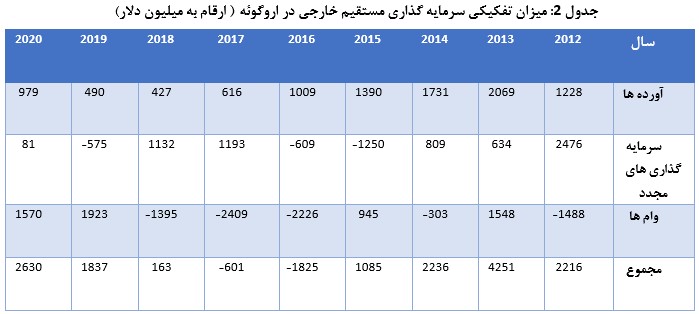 سرمایه گذاری مستقیم خارجی از سال 2012 تا 2020 به تفکیک شیوههای مختلف