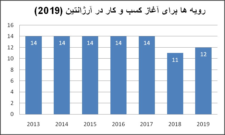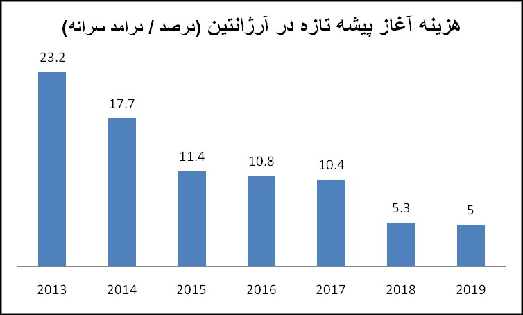 در سال 2019 هزینه آغاز یک کسب کار تازه، 5 درصد از درآمد سرانه در آرژانتین را شامل می‌شد و در رده 115 جهان قرار می‌گرفت.