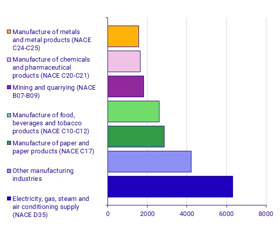 در سال 2020، صنایع برق، گاز و گرمایش (NACE 35) و صنعت تولید کاغذ و محصولات کاغذی (NACE 17) بیشترین هزینه حفاظت از محیط زیست را به خود اختصاص دادند.