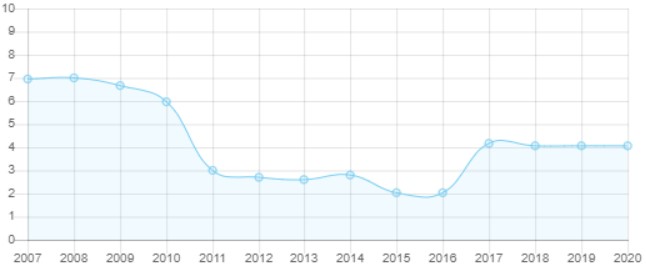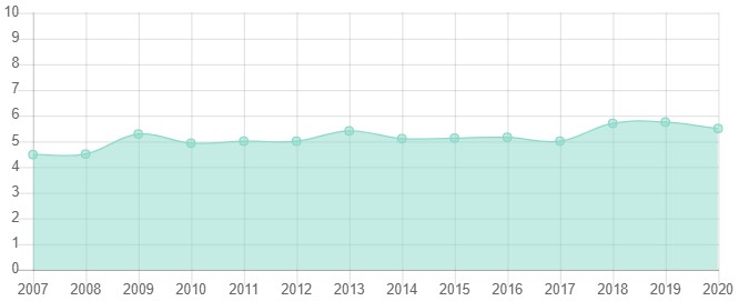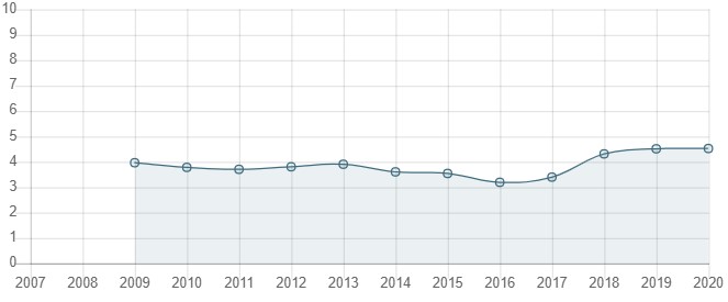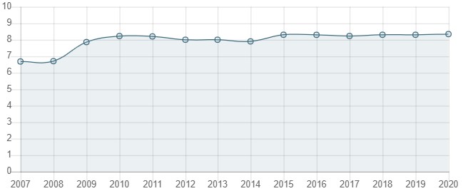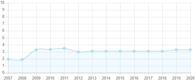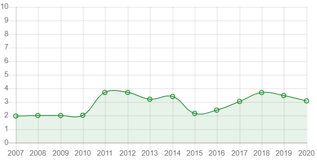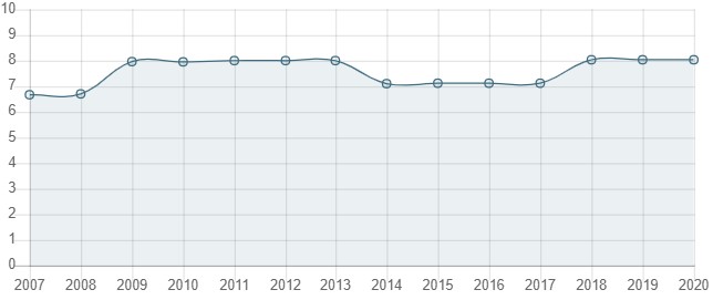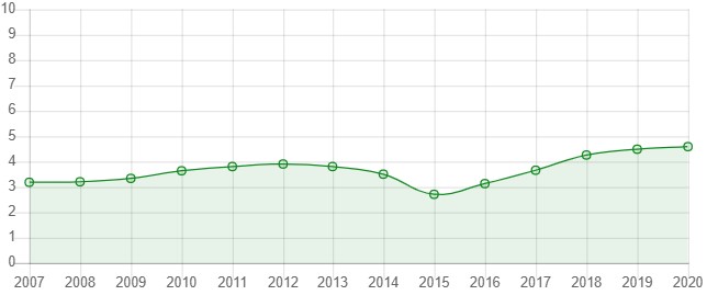 درجه استقلال قضایی آرژانتین در سال 2016 تا 2018 رو به افزایش بوده اما طی سال های 2019 و 2020 با روند کاهشی همراه شده است.