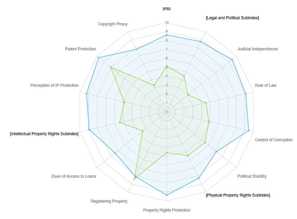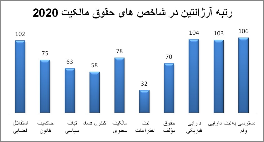جایگاه آرژانتین در هر یک از نمایه‌های شاخص بین المللی حقوق مالکیت: