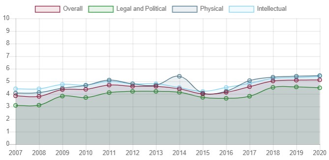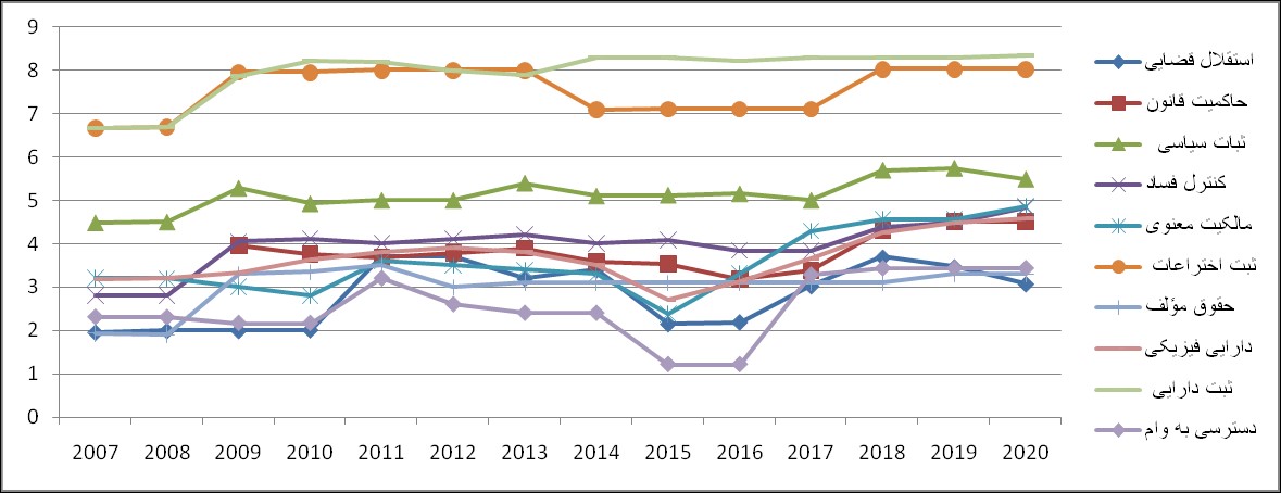 وضعیت رو به بهبود آرژانتین در سه مقوله نهادی سیاسی–حقوقی، مالکیت فیزیکی و مالکیت معنوی طی سال های 2007 تا 2020 بر اساس نمودار زیر قابل مشاهده می‌باشد: