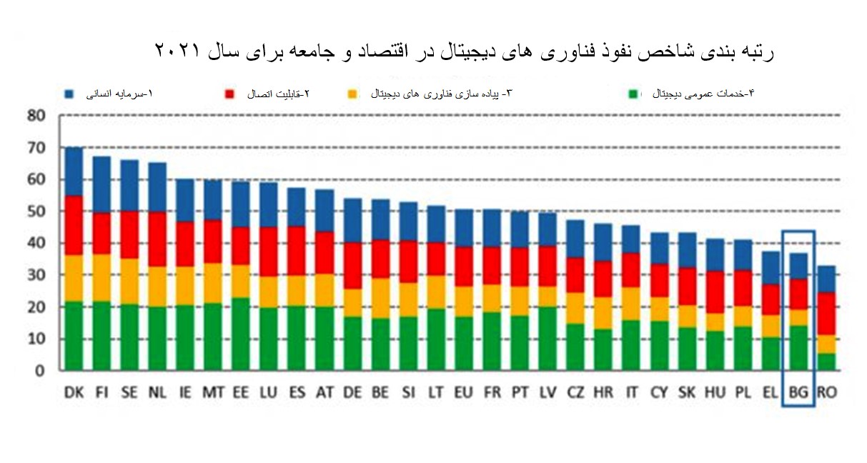 جایگاه بلغارستان در رتبه بندی شاخص نفوذ فناوری های دیجیتال در اقتصاد اتحادیه اروپا 2021