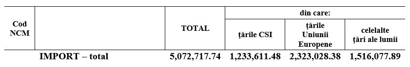 مطابق اعلام دفتر ملی آمار جمهوری مولداوی، میزان کل واردات کالایی مولداوی از ژانویه لغایت سپتامبر 2021 معادل 5 میلیارد و 72 میلیون و 717 هزار و 740 دلار برآورد شده است. از این میزان 1 میلیارد و 233 میلیون و 611 هزار و 480 دلار واردات از کشورهای مشترک المنافع، 2 میلیارد و 323 میلیون و 28 هزار و 380 دلار واردات کالا از کشورهای اتحادیه اروپائی و 1 میلیارد و 516 میلیون و 77 هزار و 890 دلار را واردات کالا از سایر کشورهای جهان تشکیل داده است.