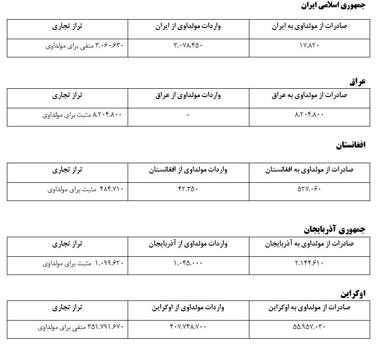 مبادلات تجاری جمهوری مولداوی با جمهوری اسلامی ایران و چند کشور دیگر تا ماه آگوست 2021