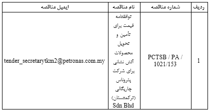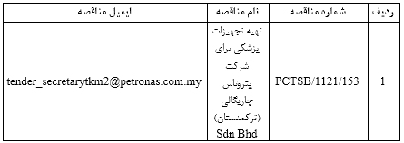 سایت مجتمع نفت و گاز ترکمنستان: شرکت پتروناس چاریگالی (ترکمنستان) Sdn Bhd از کلیه شرکت ها دعوت به عمل می آورد تا در مناقصه مذکور، شرکت نمایند: