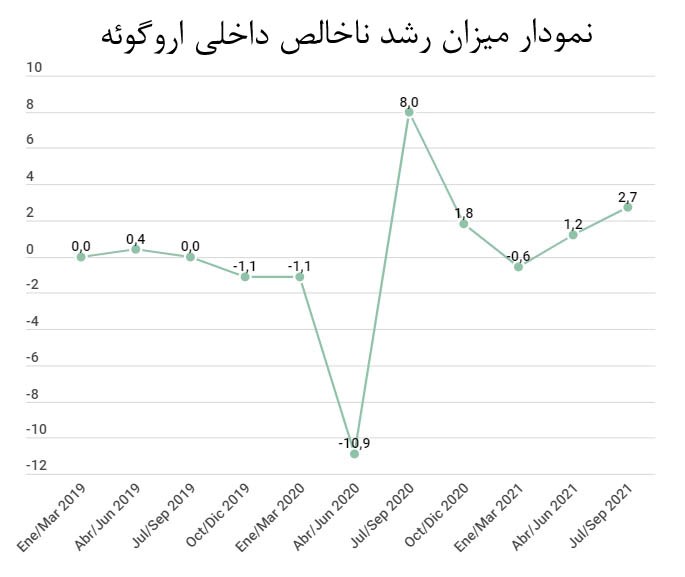 در سه ماهه سوم سال 2021، اقتصاد اروگوئه پس از ضربات متحمل شده در سال 2020 و ابتدای 2021 ناشی از شیوع کرونا، روند بهبودی خوبی به ثبت رساند.